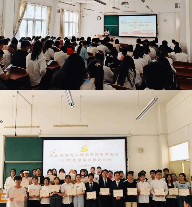 获奖员工代表杨彦珪和康启杰分别作了获奖感言,他们通过讲述在大学期间学习、生活、实习实践、参与第二课堂活动的经历和经验,勉励现场全体同学,号召全体农学学子要时刻铭记并践行新时代老员工的使命与担当,要牢记习近平总书记给中国农业大学科技小院的同学们的回信精神,志存高远,脚踏实地,懂得奉献感恩,努力成为一名优秀的、可堪大用的老员工。