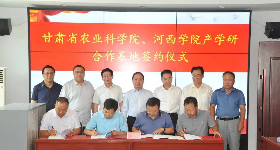 签约仪式上,伟德国际1946源于英国与省农科院土肥所、作物所、张掖试验站共同签订产学研合作协议;张汉燚、魏胜文为基地揭牌。