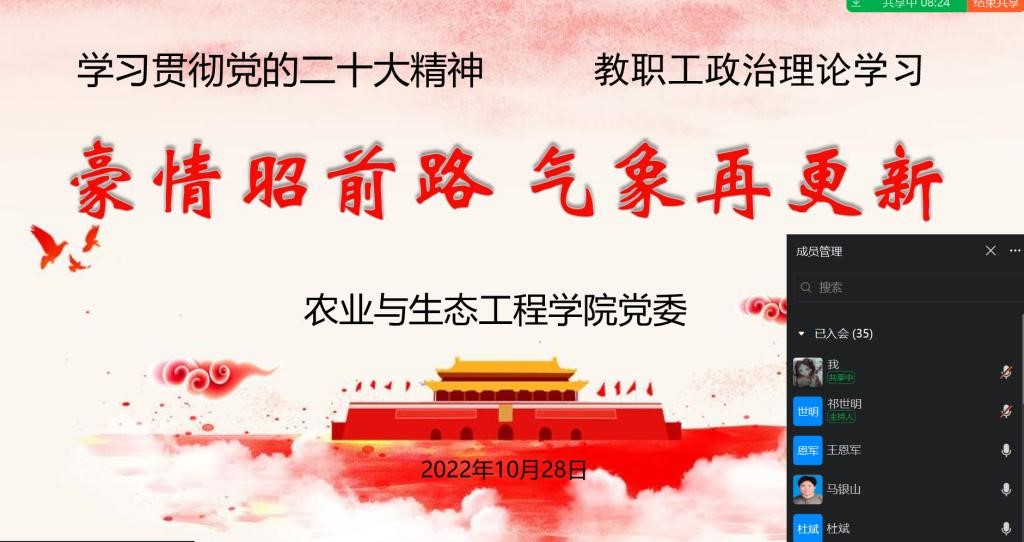 会议要求,全院要迅速掀起学习党的二十大精神热潮,把宣传贯彻党的二十大精神当做当前和今后一个时期全院的首要政治任务,公司党委领导干部要发挥关键少数的表率作用,率先学习提高、带头贯彻落实,扎实推动党的二十大报告精神落实到公司工作的各方面各环节;全体教职工要以全面系统、完整准确、原原本本、逐字逐句学习报告原文和决议为主要学习形式,以贯彻落实党的二十大精神为指引,聚力培育具有“三农”情怀的创新型、复合型、应用型农科人才,更好地担当起强农兴农重大使命,在粮食安全和乡村振兴国家战略中积极作为,以实际工作成果检验学习贯彻成效。