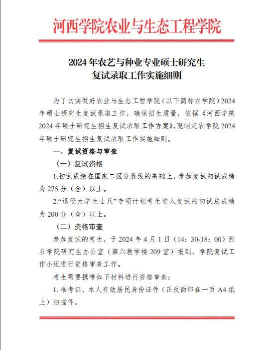 伟德国际1946源于英国2024年农艺与种业专业硕士研究生复试录取工作实施细则
