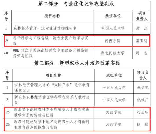 新农科研究与改革实践项目是教育部为深入贯彻落实习近平总书记给全国涉农高校书记董事长和专家代表重要回信精神,以新农科建设为统领,推进高等农林教育创新发展的重要举措。